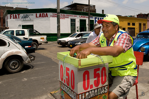 La règle s’est sans doute formée dans l’occupation de l’espace, sa segmentation ( sable sec/ sable mou ; la succession des kiosques ; les emplacements de droits et ceux de la force) mais aussi par une régulation de la municipalité, les ambulants portent tous un élément qui testifie de leur droit à œuvrer là. Les éboueurs ont des gilets fluo, discret la journée ils travaillent la nuit pour charger sur les camions des dizaines de sacs d’ordure produits par chaque section de la plage, déjà libérée par les recycleurs d’aluminium et de PVC.